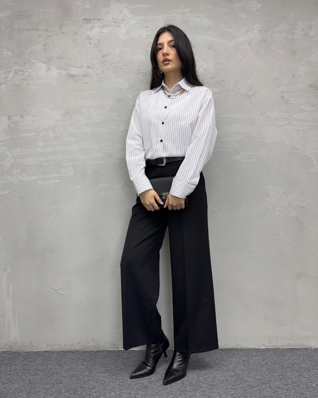Zarif ve klasik bir tarza sahip olmak isteyenler için mükemmel olan bu çizgili poplin gömlek, gardırobunuzun temel parçalarından biridir. Poplin kumaşın hafifliği ve nefes alabilirliği sayesinde gün boyu konfor sunarken, ince çizgili deseni gömleği hareketlendirir. Klasik gömlek yakası ve düğme detayları, bu gömleği hem iş hem de günlük kullanıma uygun hale getirir. Şık ve zamansız tasarımıyla her türlü kombin için ideal bir seçimdir.