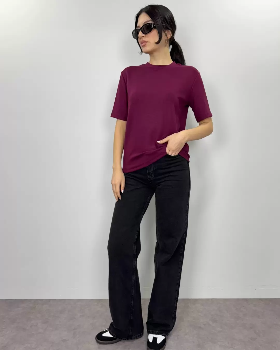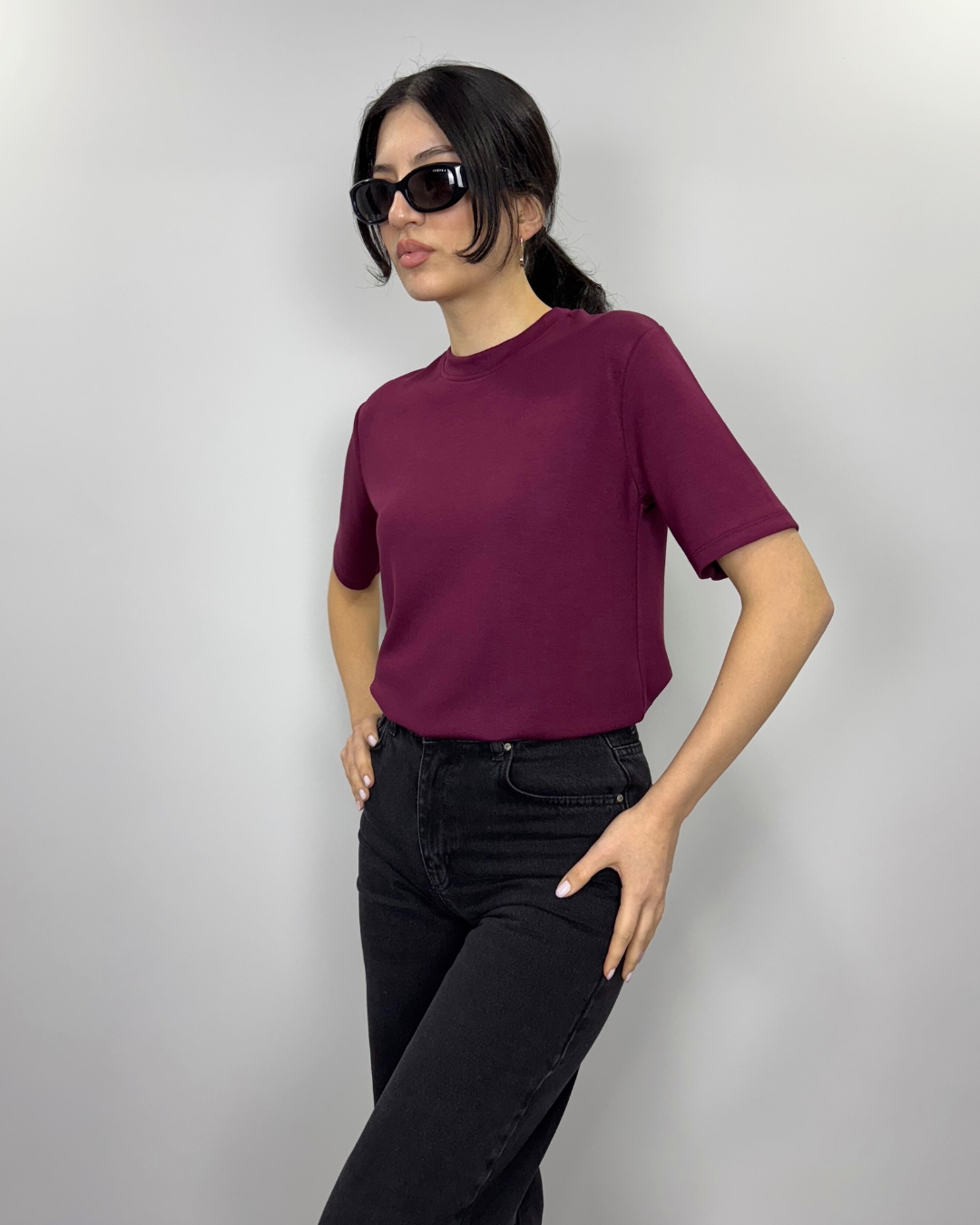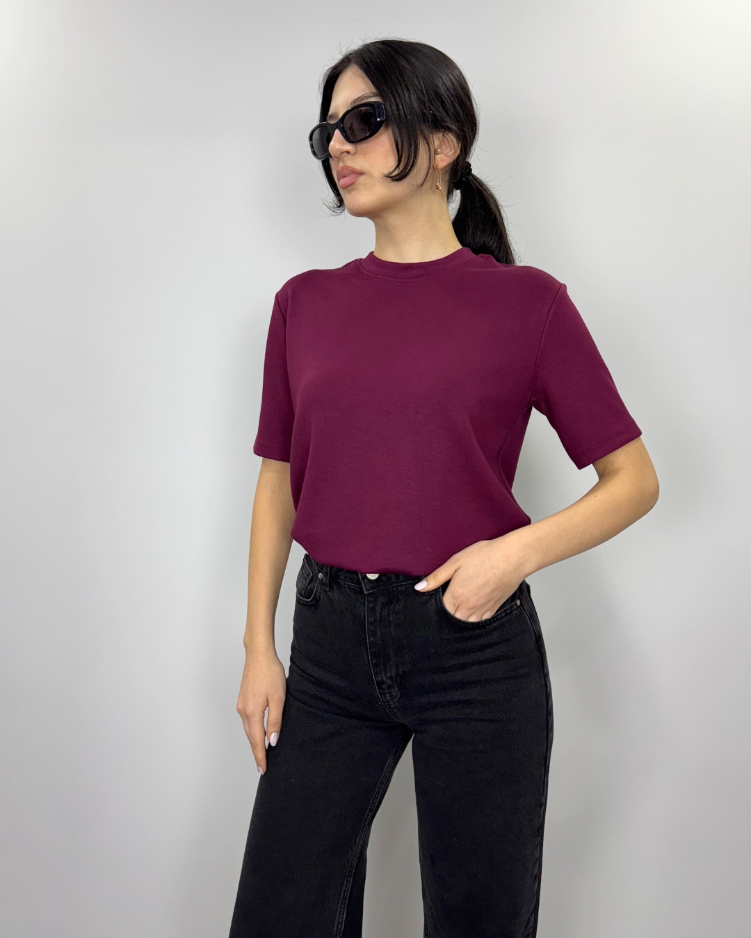 Bordo Bisiklet Yaka Modal Basic Tişört