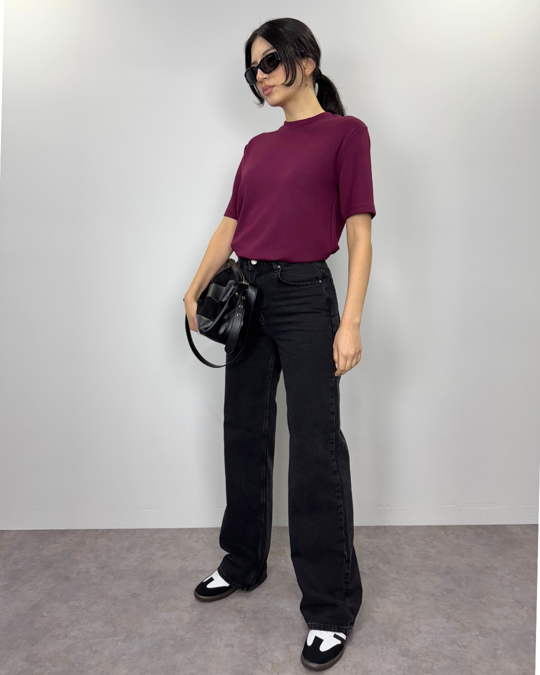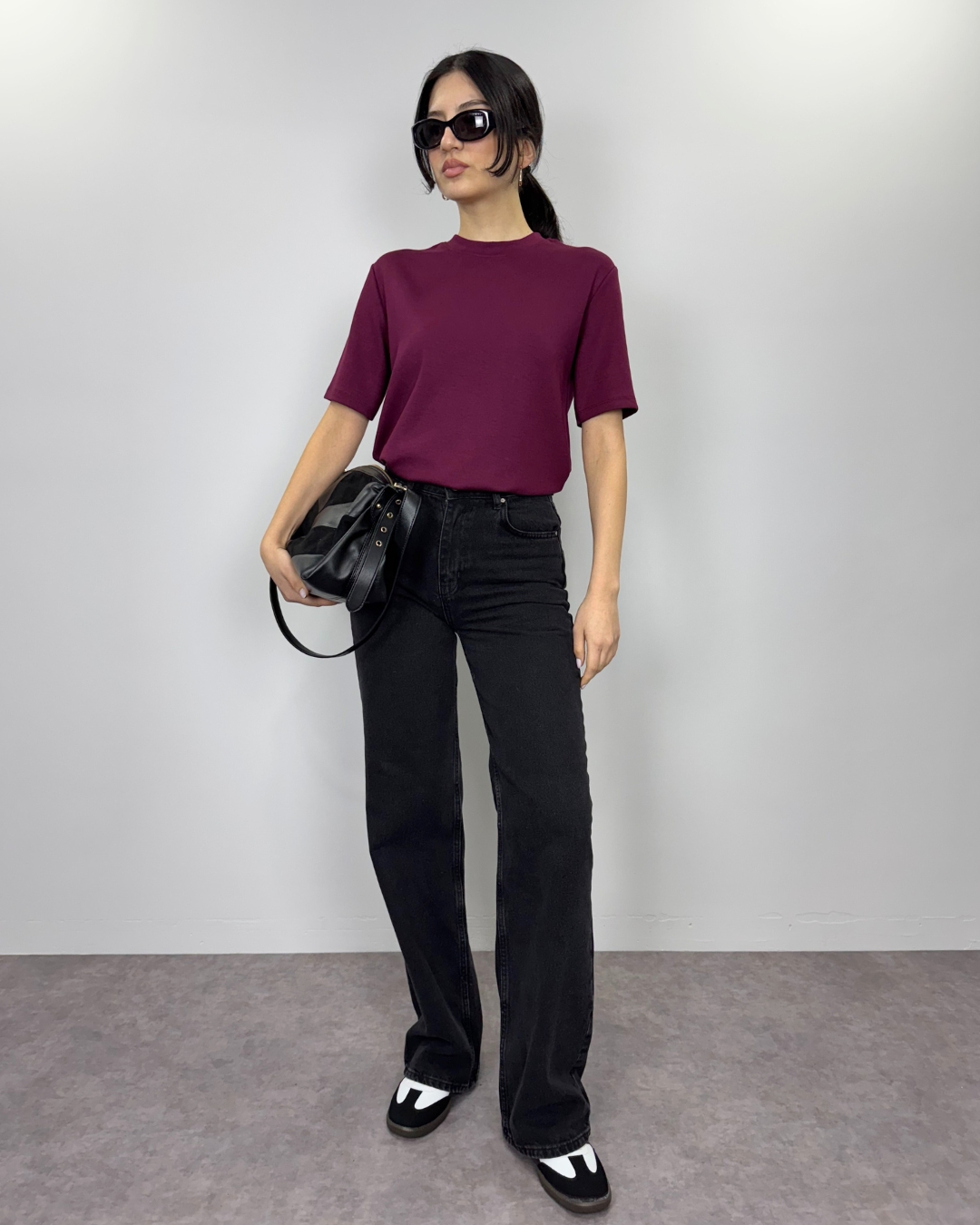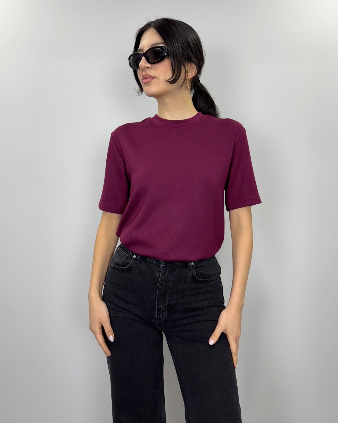 Bordo Bisiklet Yaka Modal Basic Tişört