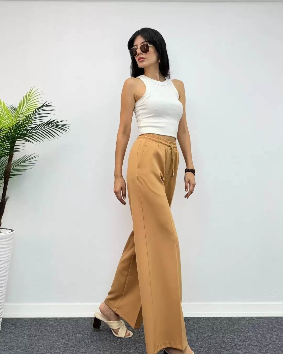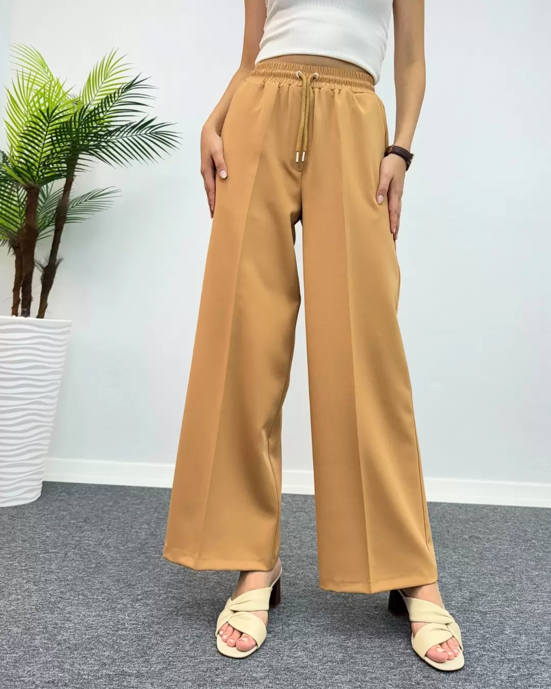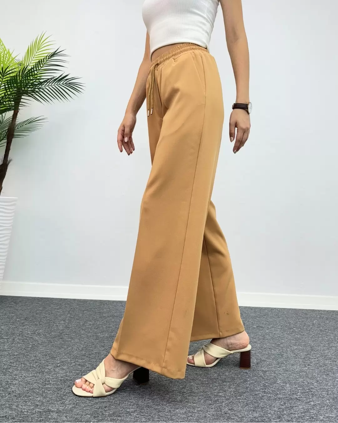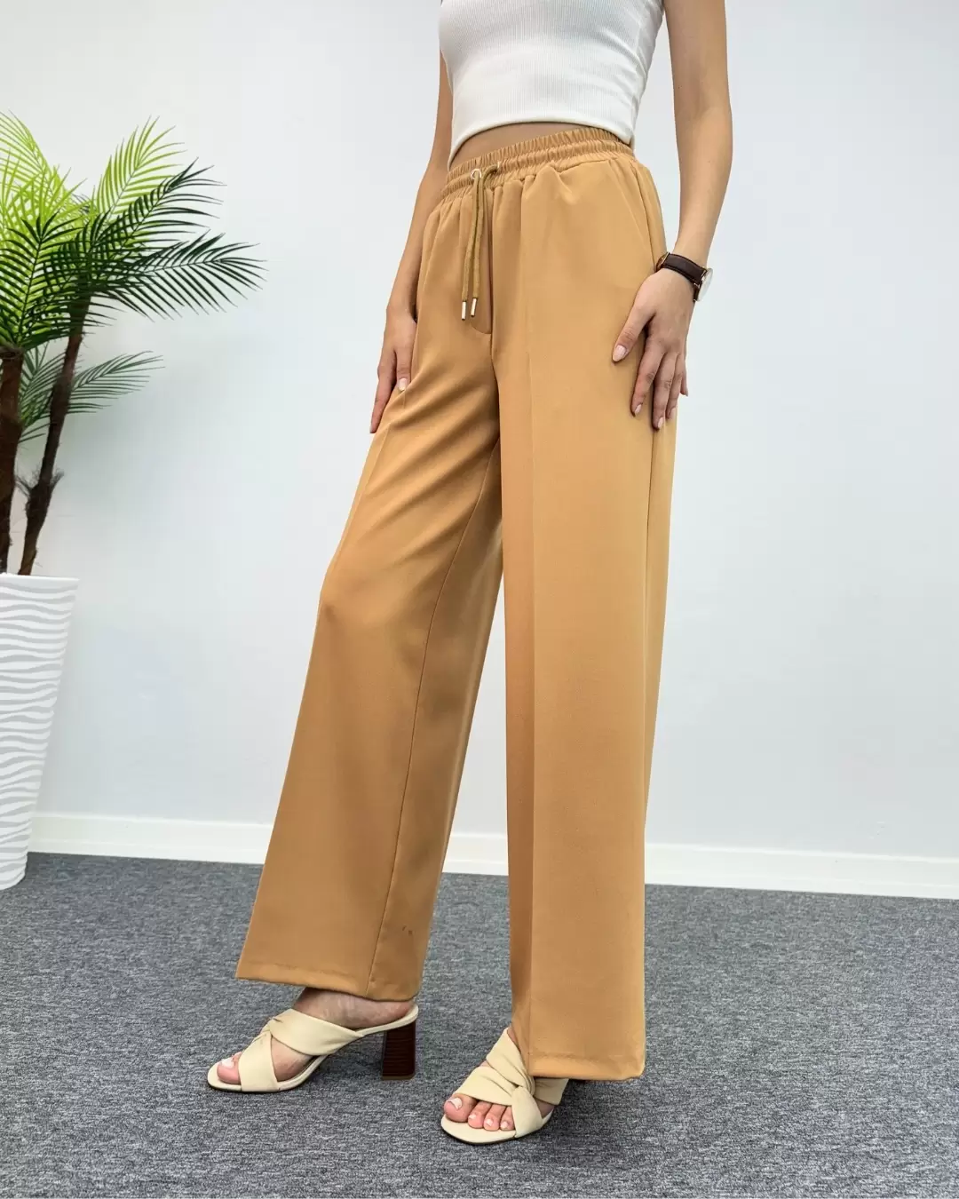 Beli lastikli leopar desen pantolon, rahat kesimi ve şık tasarımıyla öne çıkar. Yüksek kaliteli kumaşıyla günlük kullanıma uygun, her mevsimde tercih edilebilir.