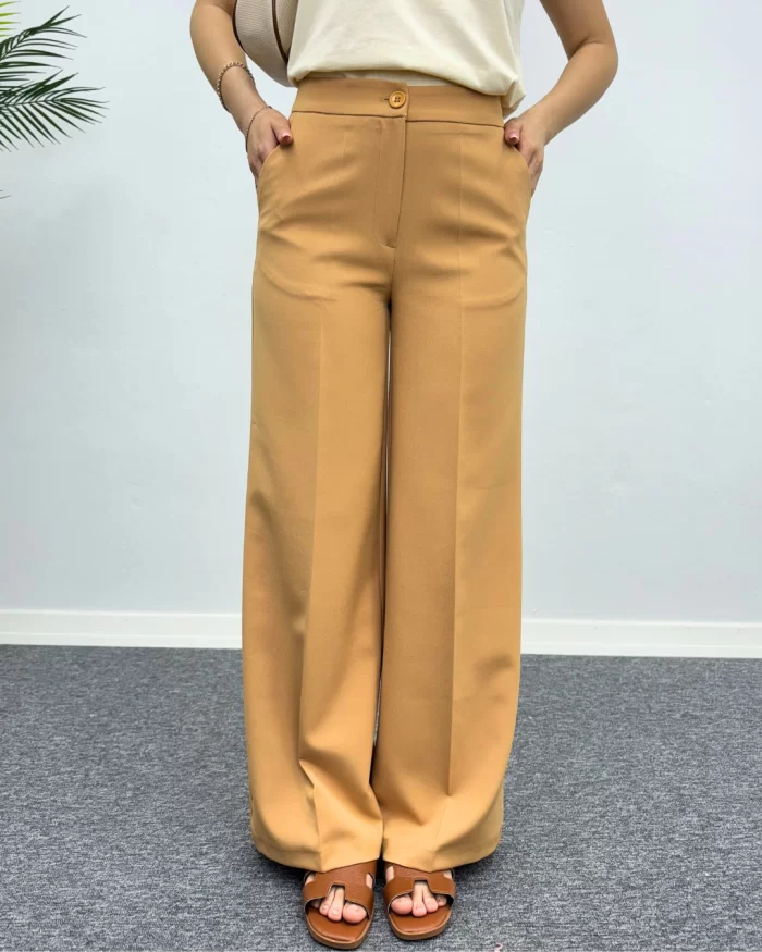 Arka Bel Lastikli Palazzo Pantolon, konforu ve şıklığı bir araya getiren modern bir seçenektir. Arka bel kısmında bulunan lastik detayı sayesinde bedene tam uyum sağlar ve rahat bir giyim deneyimi sunar. Geniş paça tasarımıyla hareket özgürlüğü sunarken, şıklığıyla da dikkat çeker. Yüksek kaliteli ve hafif kumaşı, gün boyu konfor sağlar. Hem günlük kullanıma hem de özel günlerde rahatlıkla tercih edilebilir.