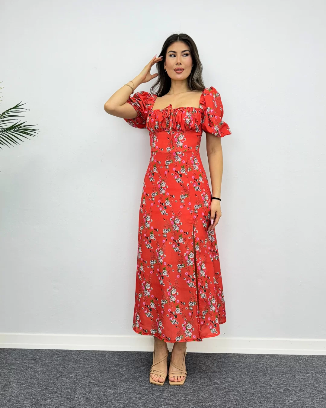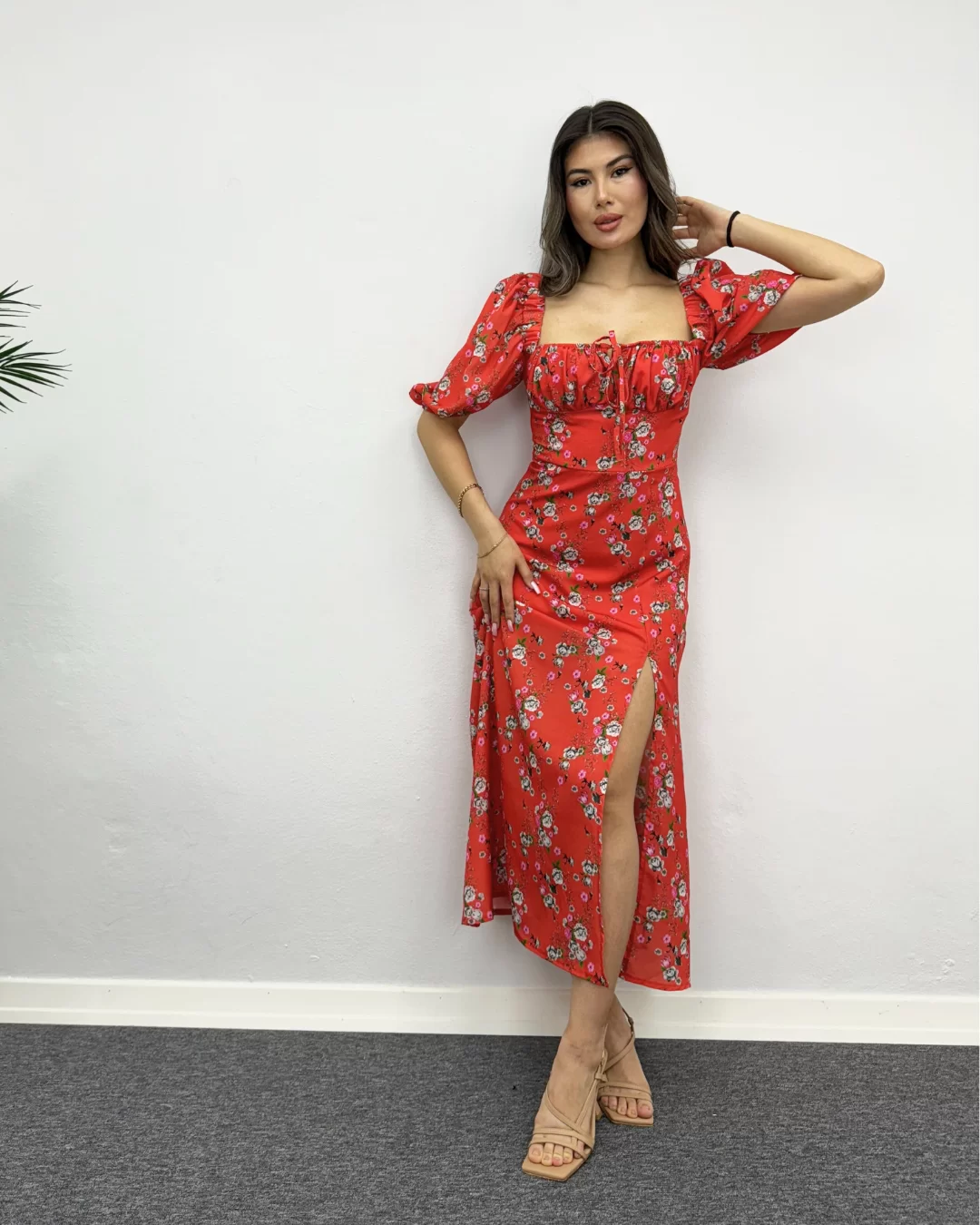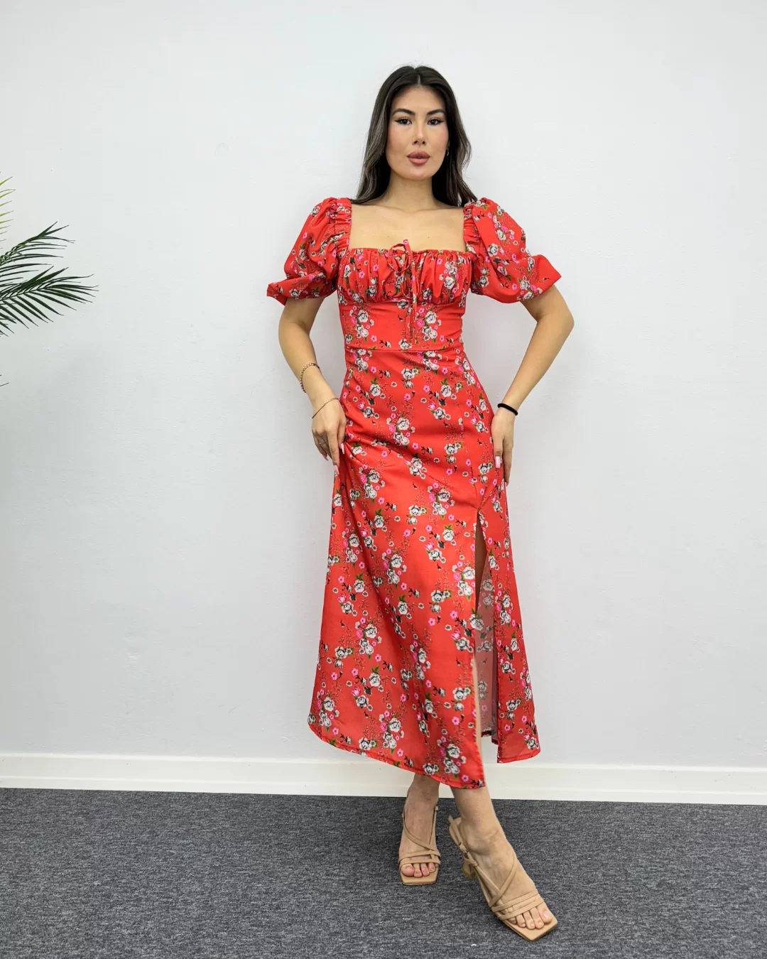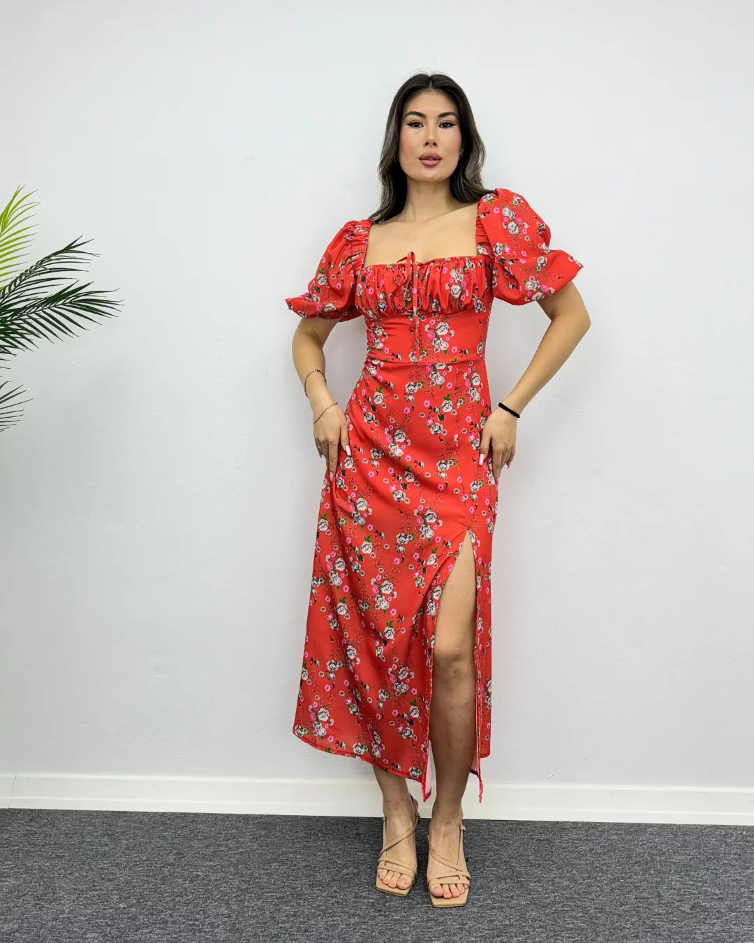 Yaza enerjik bir dokunuş katın! Balon kol detayıyla modern bir tarza sahip olan bu çiçek desenli elbise, gardırobunuza canlılık katacak. Rahat ve hafif yapısıyla gün boyu konfor sağlar. Güneşli günlerde veya özel etkinliklerde mükemmel bir seçimdir. Etek kısmındaki hafif volan detayı, hareketliliği ve şıklığı bir araya getirir. Kendinizi özgür hissetmek için tasarlanmış olan bu elbise, stilinizi yansıtmanızı sağlayacak!