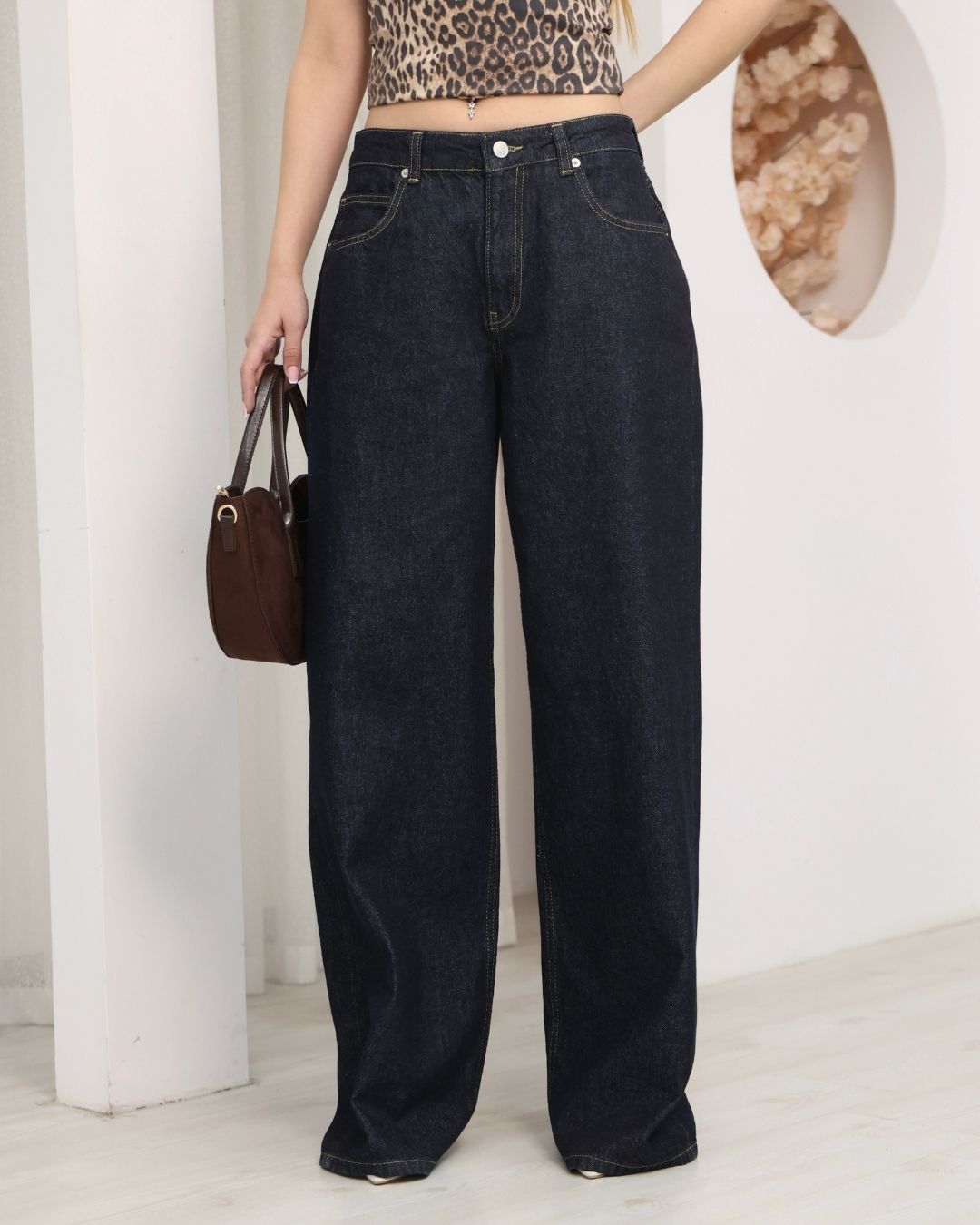 Kadın Koyu Lacivert Düşük Bel Geniş Paça Baggy Jean Pantolon rahat ve salasa durusu ile sokak stilini yansitan trend bir modeldir.; Dusuk bel kesimi modern ve genc bir gorunum sunarken bol ve genis paca tasarimi sayesinde ozgur ve konforlu bir kullanim saglar.; Koyu lacivert denim rengi daha net ve iddiali bir stil olusturur.; Gunluk kombinlerde kolayca uyum saglar.; Crop bluz oversize tisort sweatshirt ve sneaker ile kombinlenerek guclu bir street style gorunumu elde edebilirsiniz.; Urun likrasizdir.; Esneme yapmaz.; Denim kumasi tok yapiya sahiptir ve formunu korur.; Bol kalip olarak tasarlanmistir salasa durmasini isteyenler icin idealdir.; Dar kalip tercih eden veya vucuda daha oturan gorunum isteyen musteriler bir beden kucuk tercih edebilir.; Gunluk kullanim okul kombinleri ve sehir stiline uygundur.; Not Urun bol kaliptir ve likrasizdir.; Beden secimi yaparken olcu tablosunu dikkate almaniz onerilir.