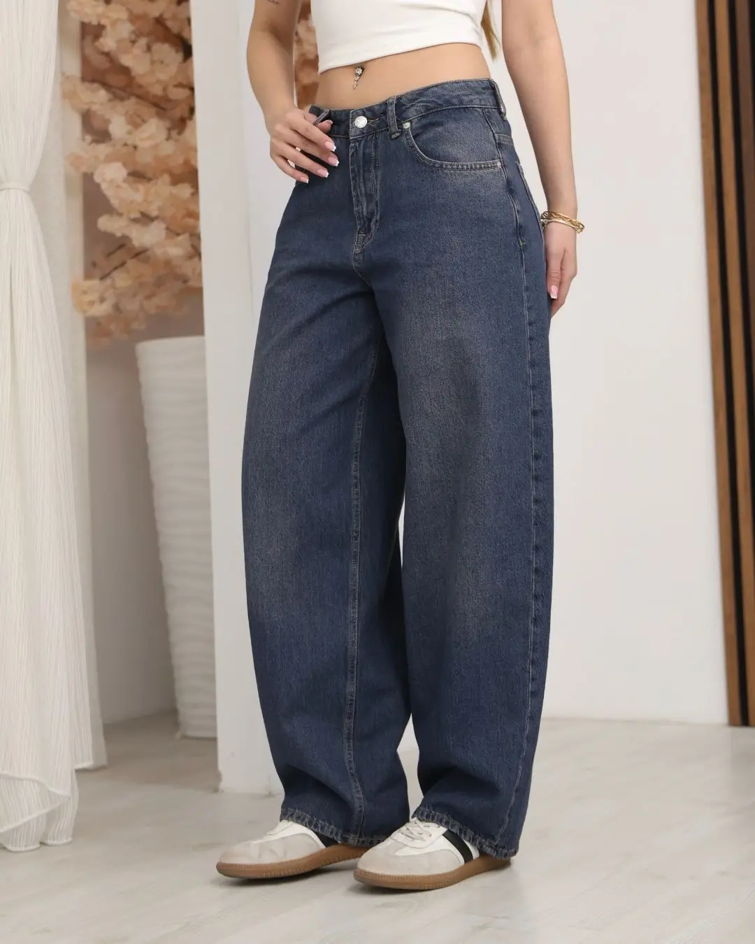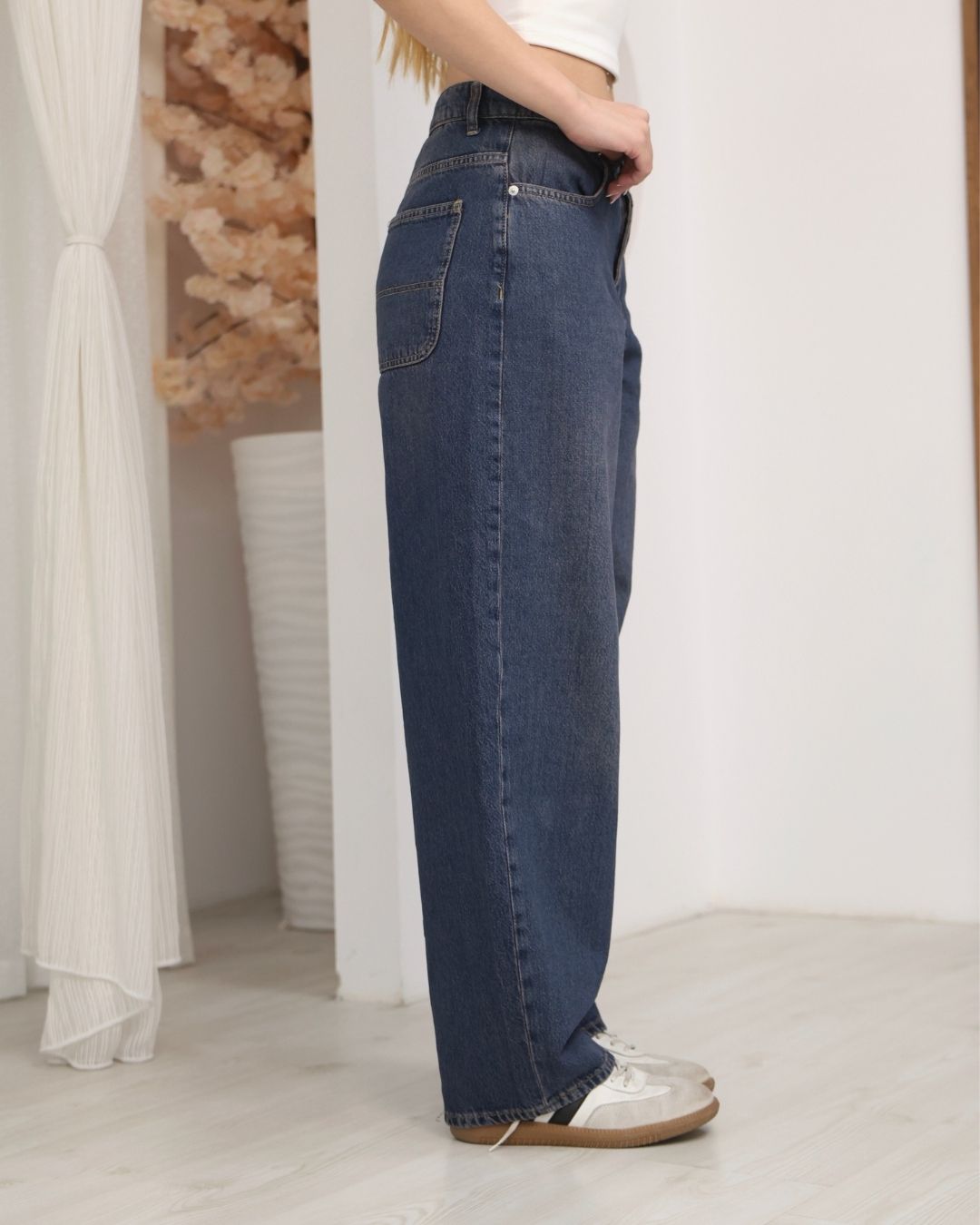 Kadın lacivert düşük bel geniş paça baggy jean pantolon modern streetwear stilini günlük şıklıkla buluşturur.; Skater model tasarımı sayesinde rahat hareket özgürlüğü sunar ve salaş duruşuyla trend görünüm sağlar.; Likrasız denim kumaşı tok yapısıyla formunu korur ve gün boyu konforlu kullanım sunar.; Bol kalıp kesimi vücuda yapışmaz, geniş paça formu sayesinde bacak boyunu uzun gösterir.; Günlük kombin, şehir stili, okul, tatil ve hafta sonu kullanımı için idealdir.; Sneaker, crop top, sweatshirt ve oversize üstlerle mükemmel uyum sağlar.; Hem spor hem casual kombinlerde kullanılabilen zamansız bir parçadır.;