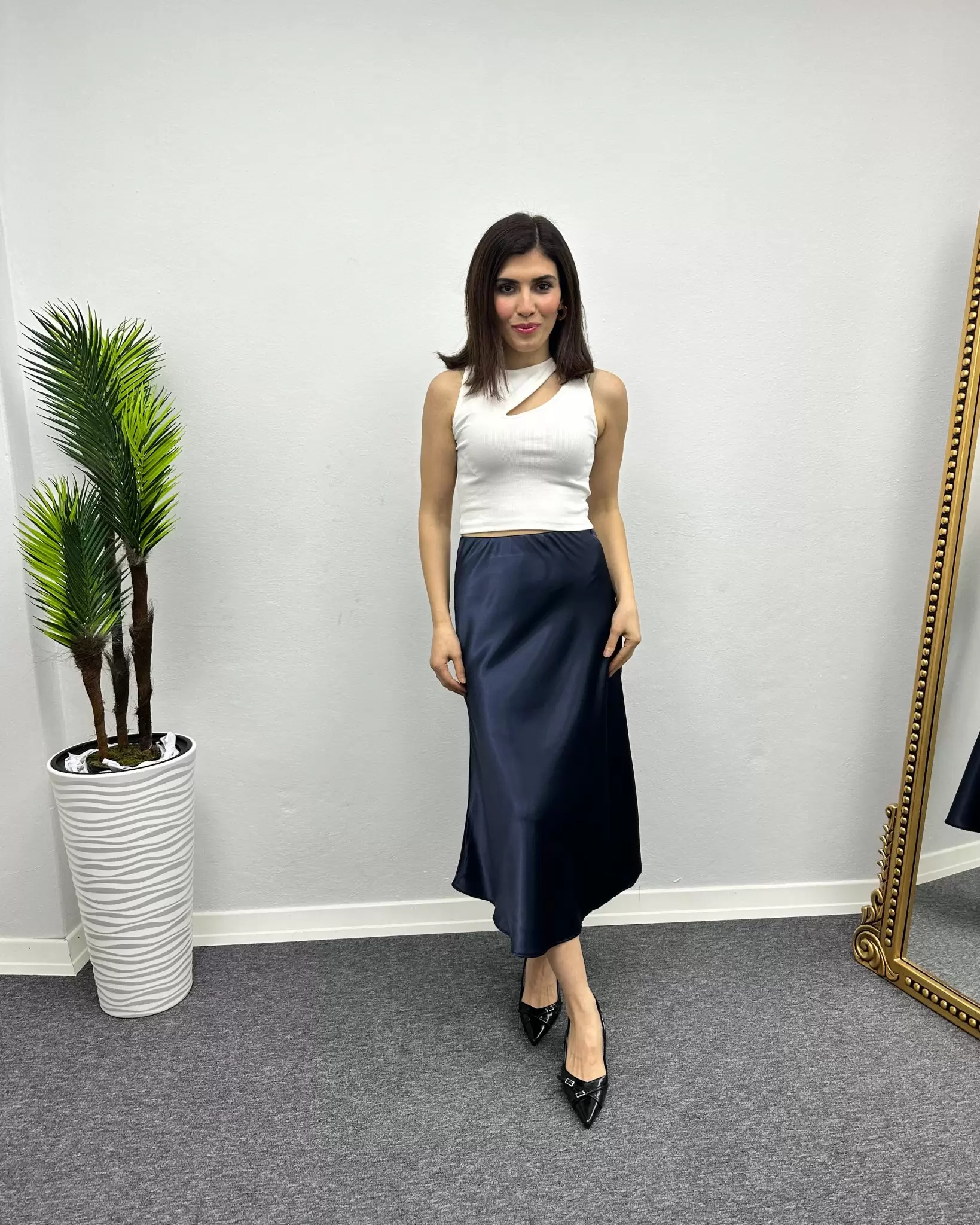 Ana Sayfa Etek Lacivert Saten Etek