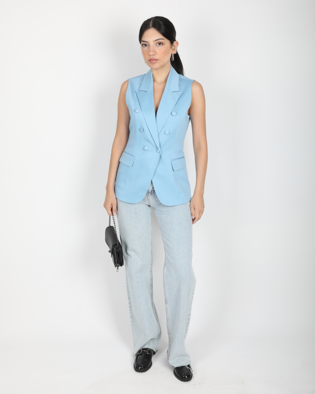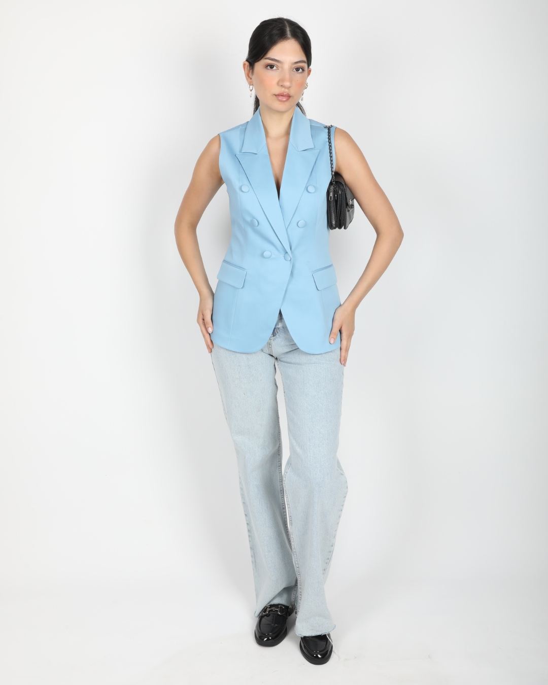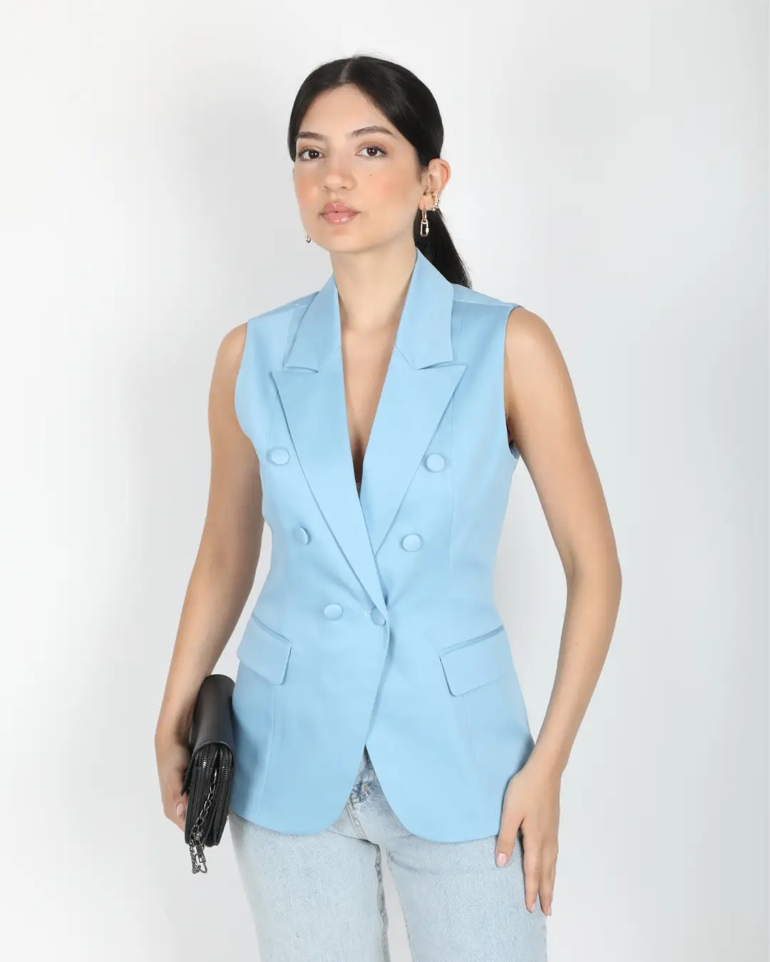 Mavi Blazer Erkek Yaka Kruvaze Yelek