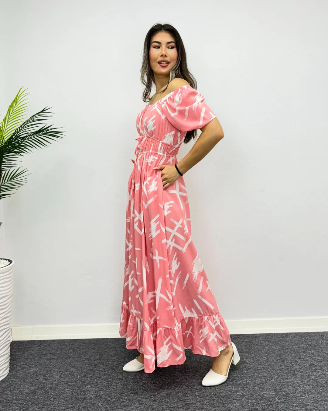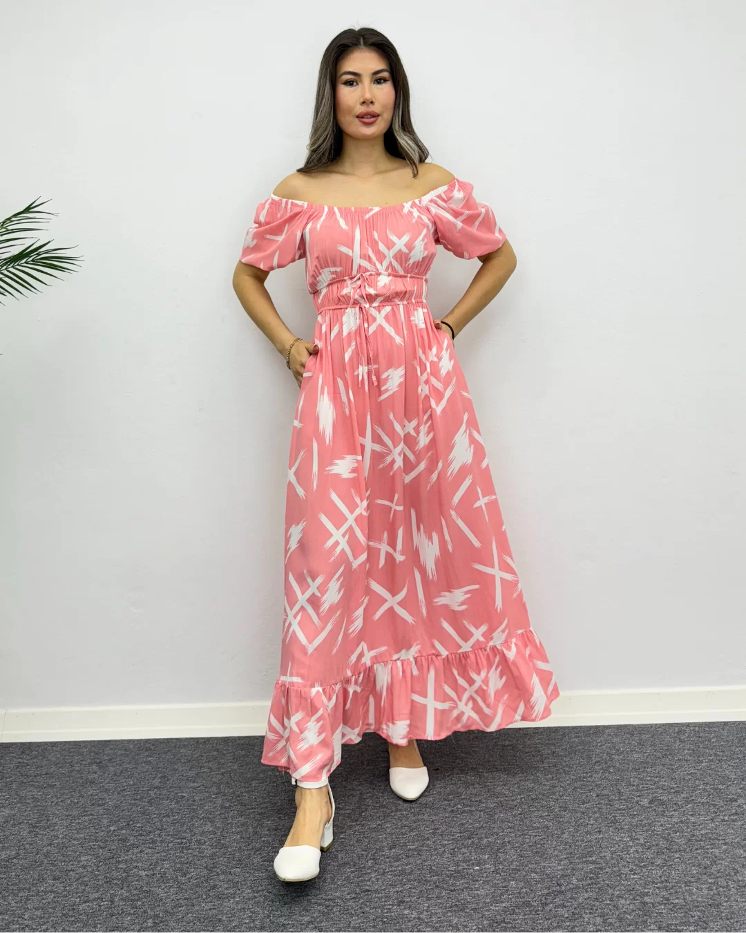 Eşsiz deseni ve konforuyla öne çıkan bu çarpım desenli viskon elbise, tarzınıza canlılık katmak için mükemmel bir seçenektir. Yumuşak ve nefes alabilen viskon kumaşı, gün boyu rahatlık sunarken, etkileyici deseniyle de dikkatleri üzerinize çeker. Bel kısmındaki ince kemer detayıyla figürünüzü vurgularken, hafif balon kol detayı da feminen bir hava katıyor. Günlük kullanımdan özel davetlere kadar her ortamda şıklığınızı ön plana çıkaracak bu elbise, gardırobunuzun vazgeçilmezi olacak.