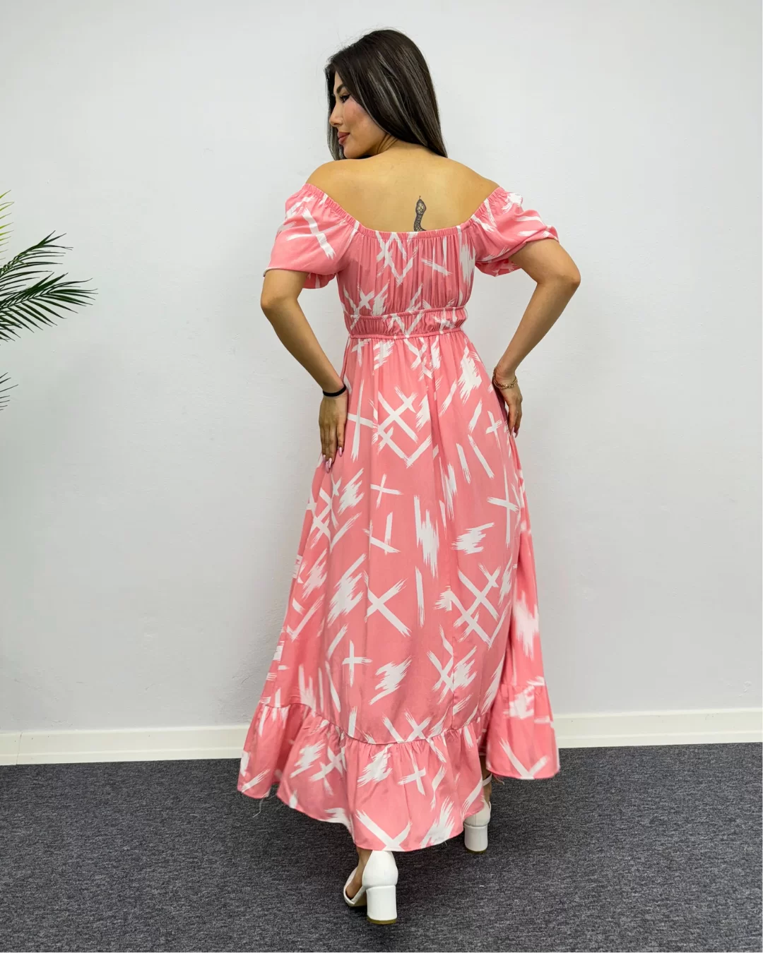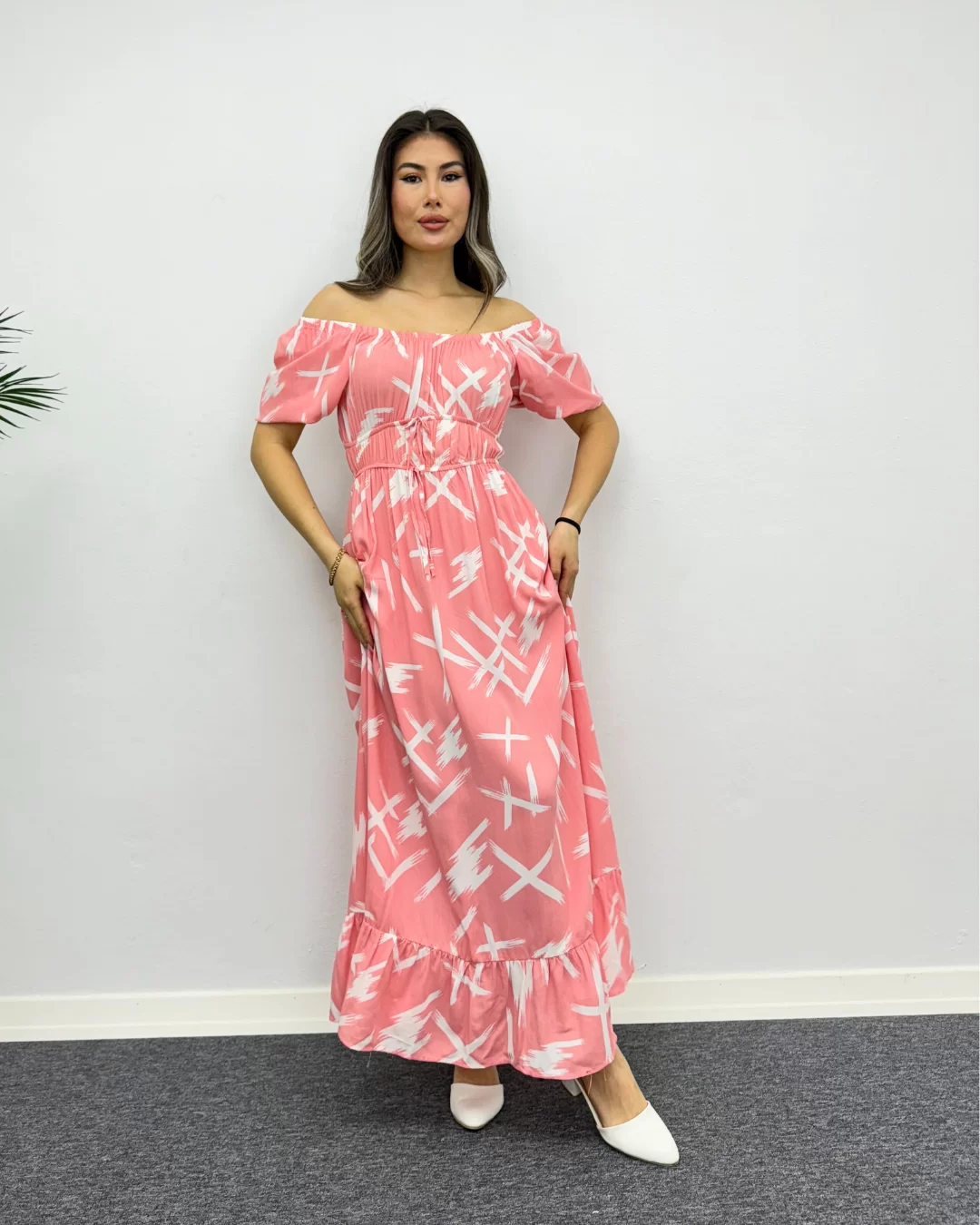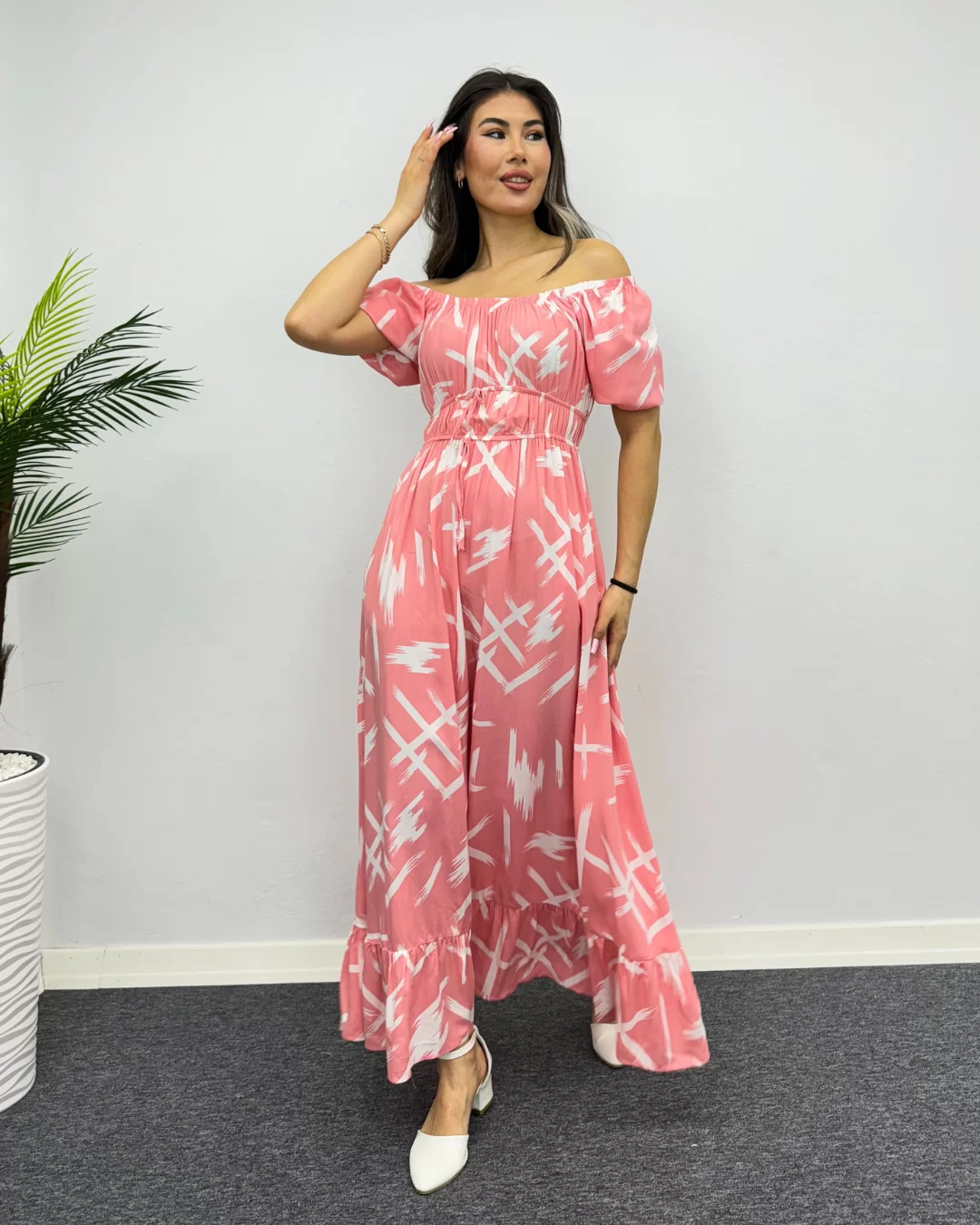 Canlı deseni ve rahat viskon kumaşıyla dikkat çeken çarpım desenli viskon elbise, tarzınıza hareket katmak için ideal bir seçenektir. Yumuşak kumaşıyla gün boyu konfor sunarken, etkileyici deseniyle de göz alıcı bir görünüm sağlar.