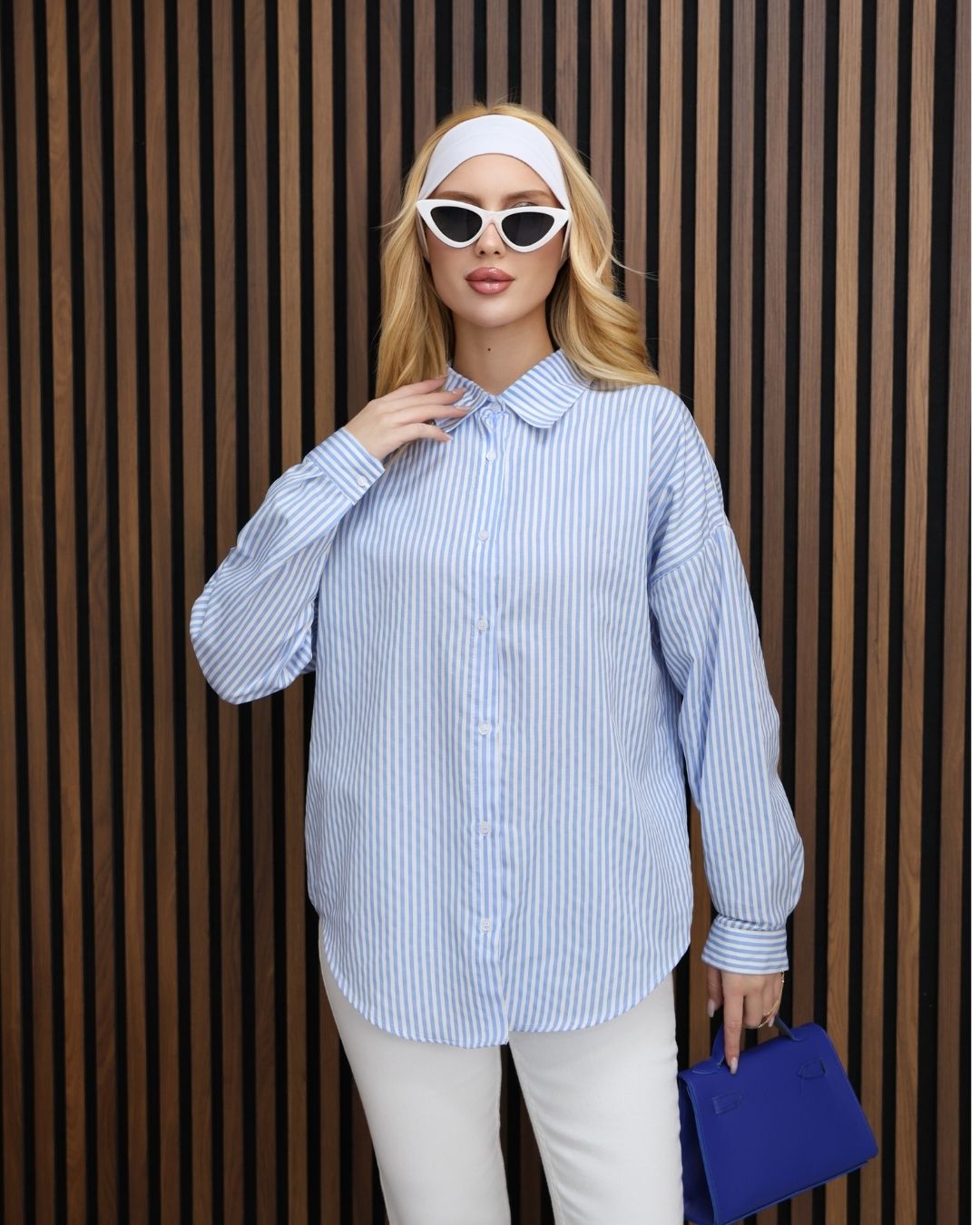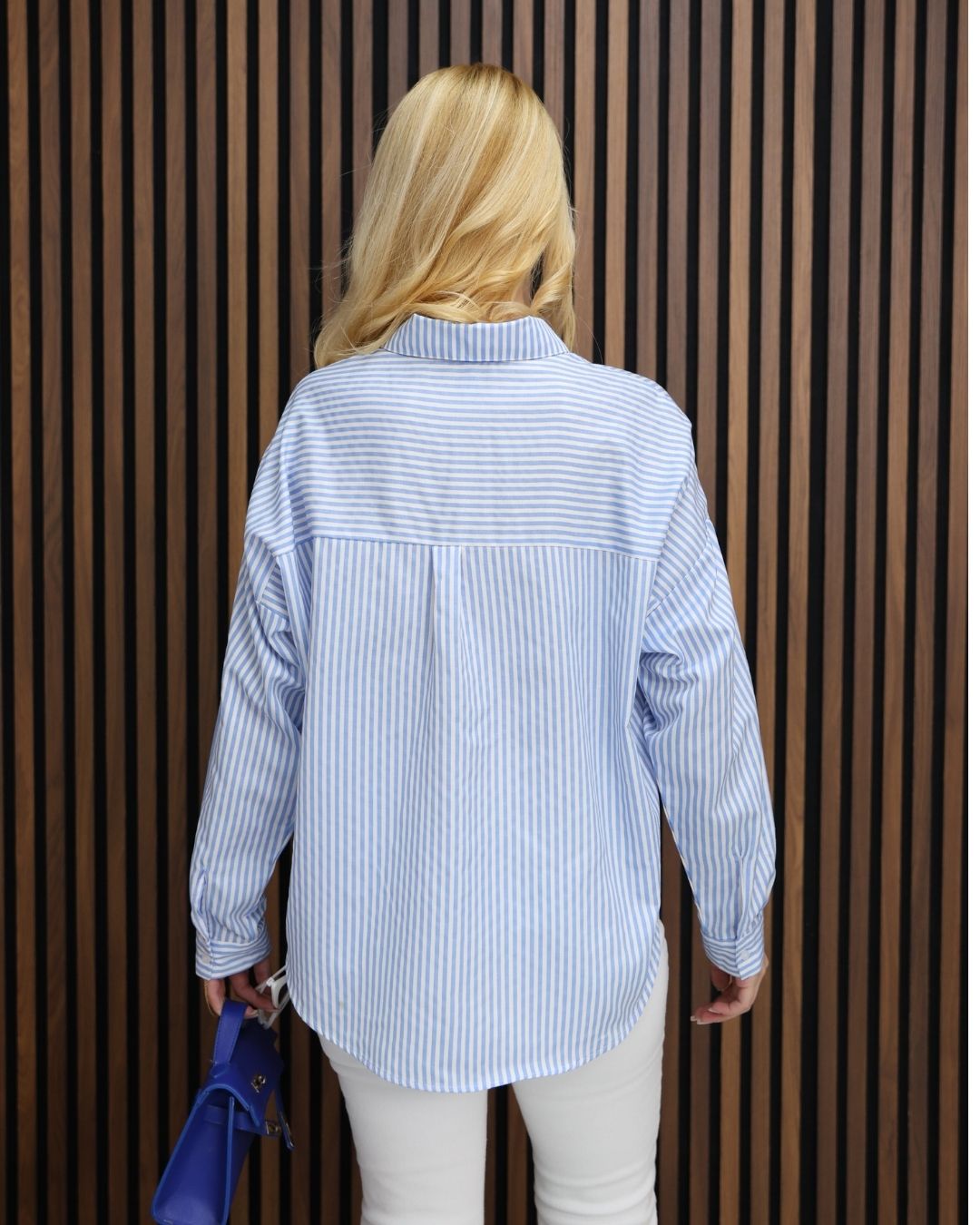 Ana Sayfa Gömlek Mavi Çizgili Oversize Uzun Kollu Geniş Kalıplı Pamuklu Gömlek