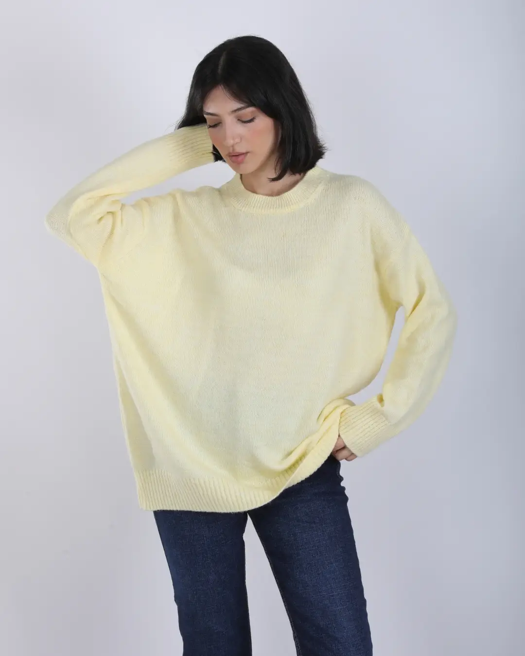 Sarı Bisiklet Yaka Oversize Salaş Triko kazak
