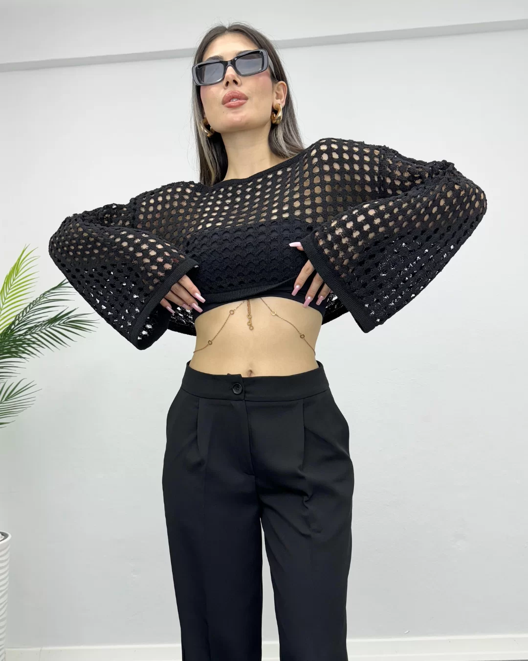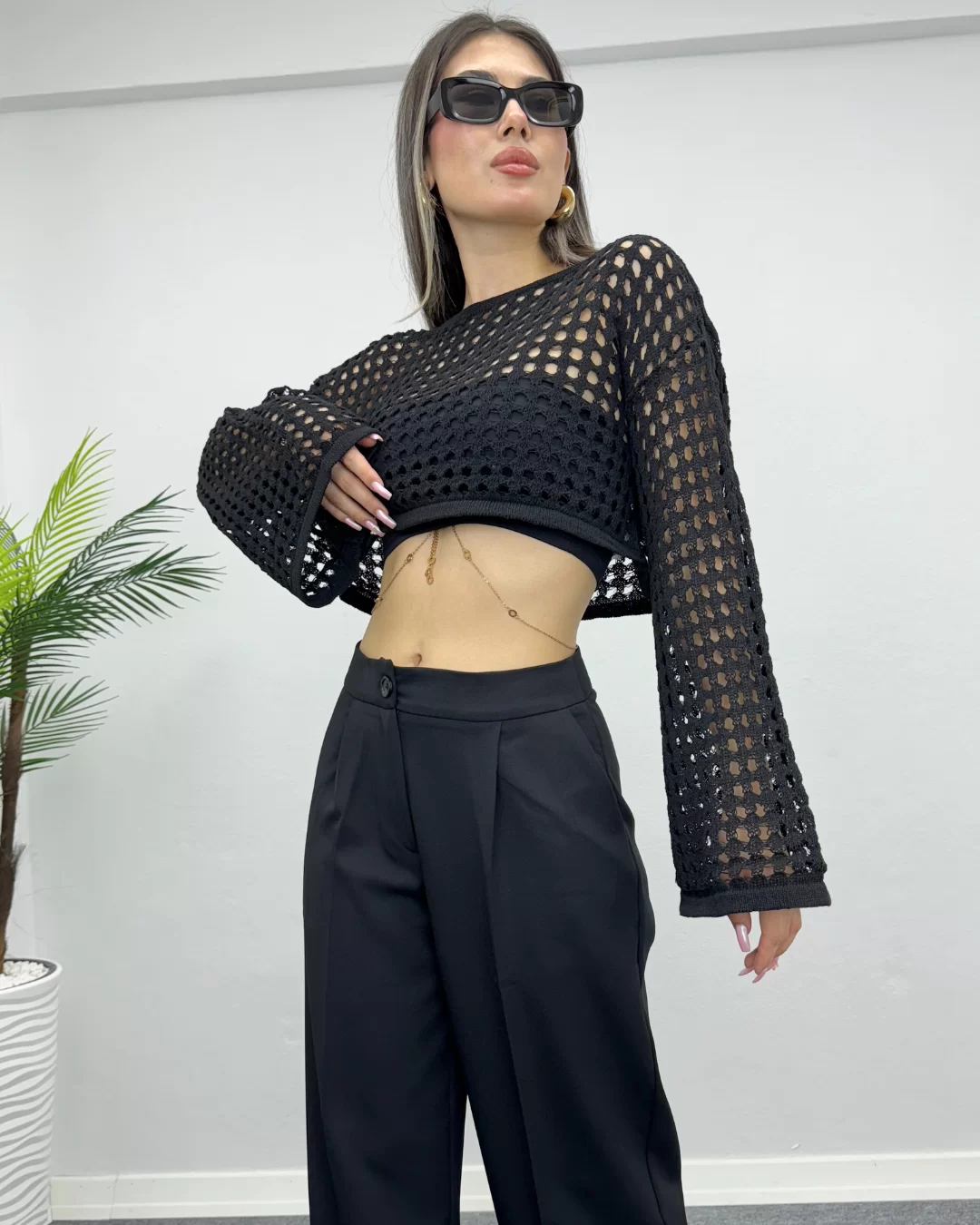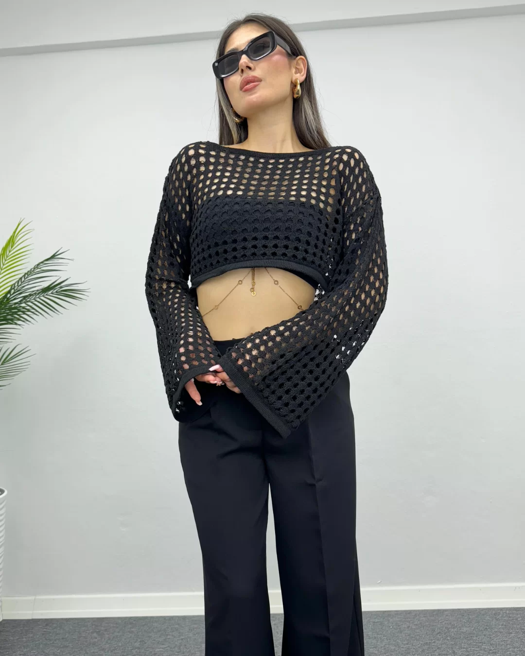 Ajurlu Crop, zarif detayları ve modern kesimiyle dikkat çeken bir üründür. Crop kesimiyle beli ortaya çıkarırken, ajurlu dokusuyla feminen bir hava katmaktadır. Yüksek kaliteli ve hafif kumaşı, gün boyu konfor sağlar. Hem günlük kullanımda hem de özel günlerde rahatlıkla tercih edilebilir. Farklı renk seçenekleriyle tarzınıza uygun olanı seçebilirsiniz.