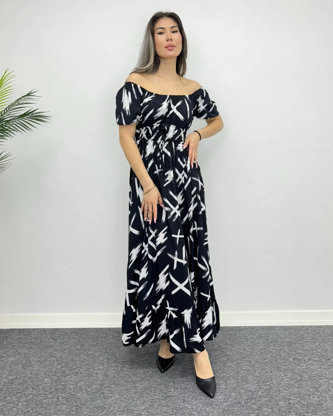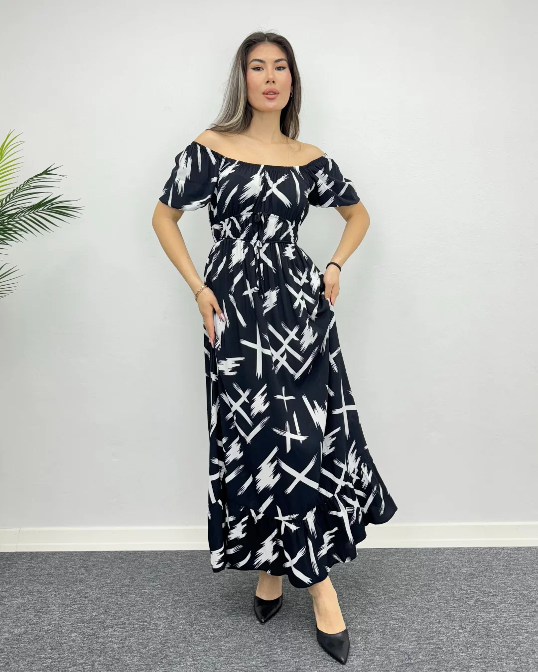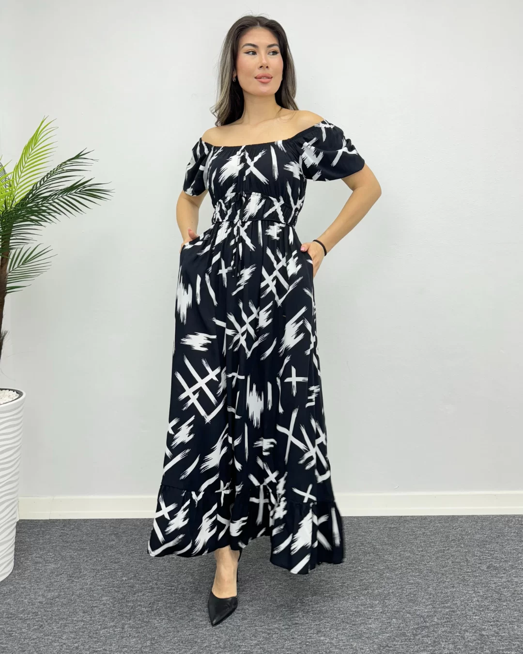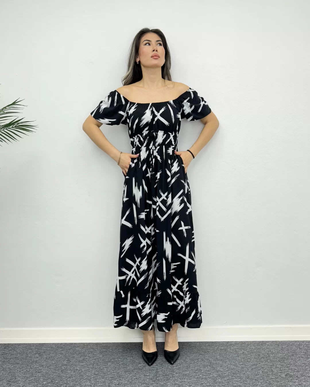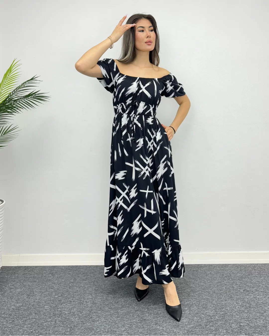 Eşsiz deseni ve konforuyla öne çıkan bu çarpım desenli viskon elbise, tarzınıza canlılık katmak için mükemmel bir seçenektir. Yumuşak ve nefes alabilen viskon kumaşı, gün boyu rahatlık sunarken, etkileyici deseniyle de dikkatleri üzerinize çeker. Bel kısmındaki ince kemer detayıyla figürünüzü vurgularken, hafif balon kol detayı da feminen bir hava katıyor. Günlük kullanımdan özel davetlere kadar her ortamda şıklığınızı ön plana çıkaracak bu elbise, gardırobunuzun vazgeçilmezi olacak.