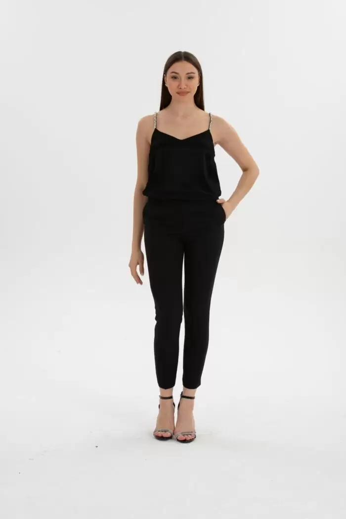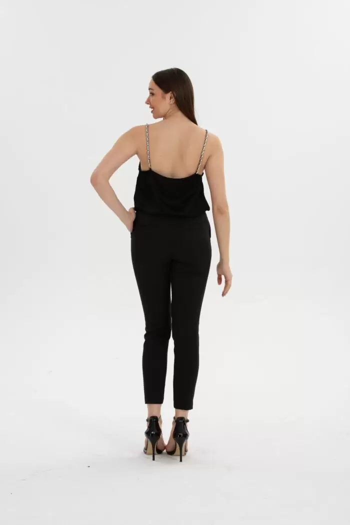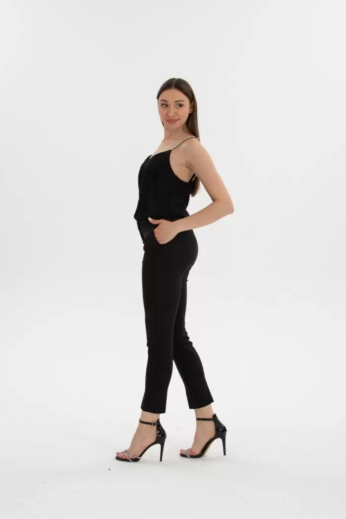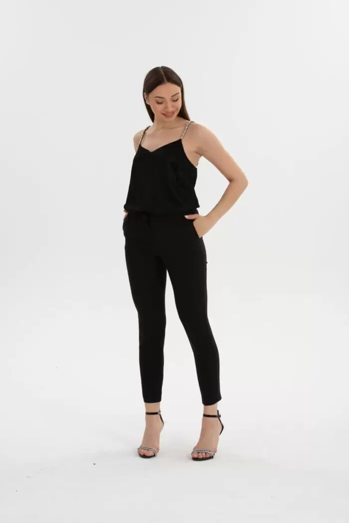 Bağcıklı Bel Lastikli Pantolon, rahatlığı ve şıklığı bir arada sunan modern bir seçenektir. Bel kısmında bağcık detayı ve lastikli yapı ile dikkat çekiyor.