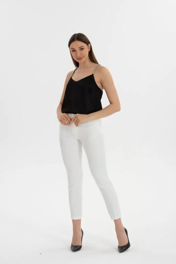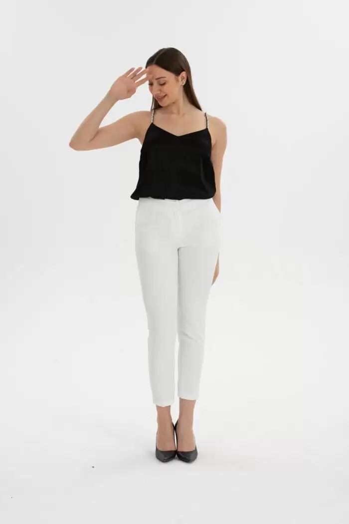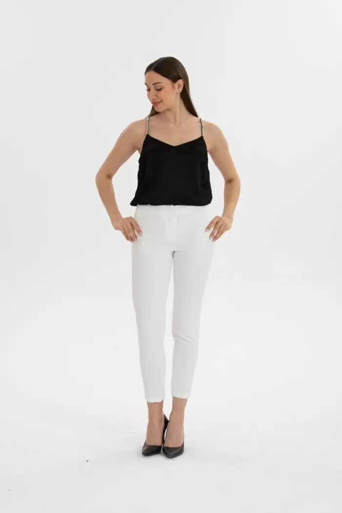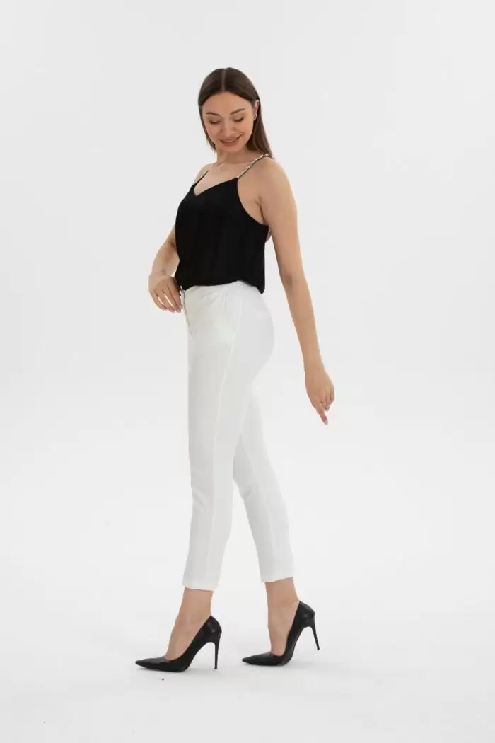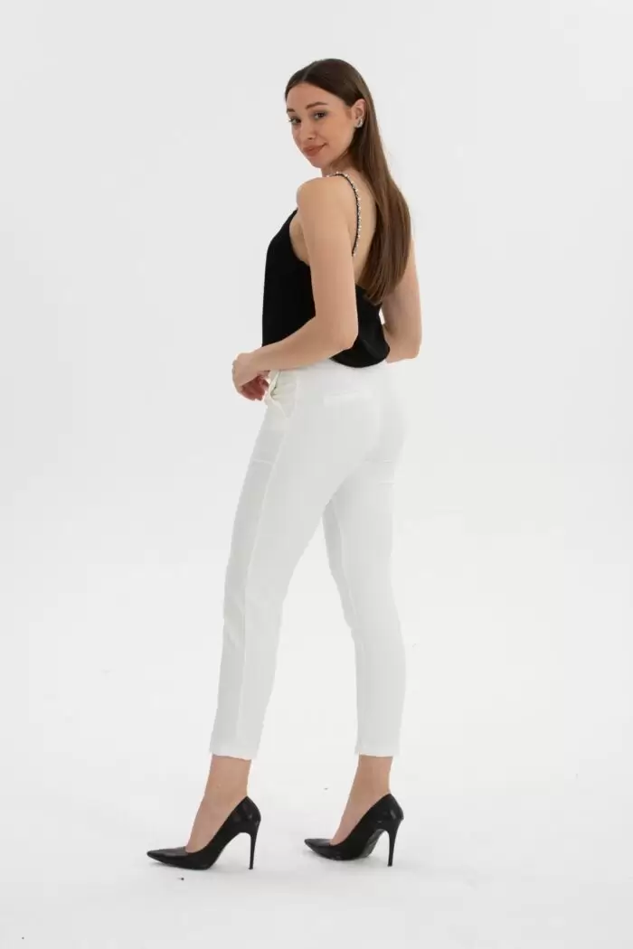 Ana Sayfa Pantolon Ekru Skinny Kumaş Pantolon