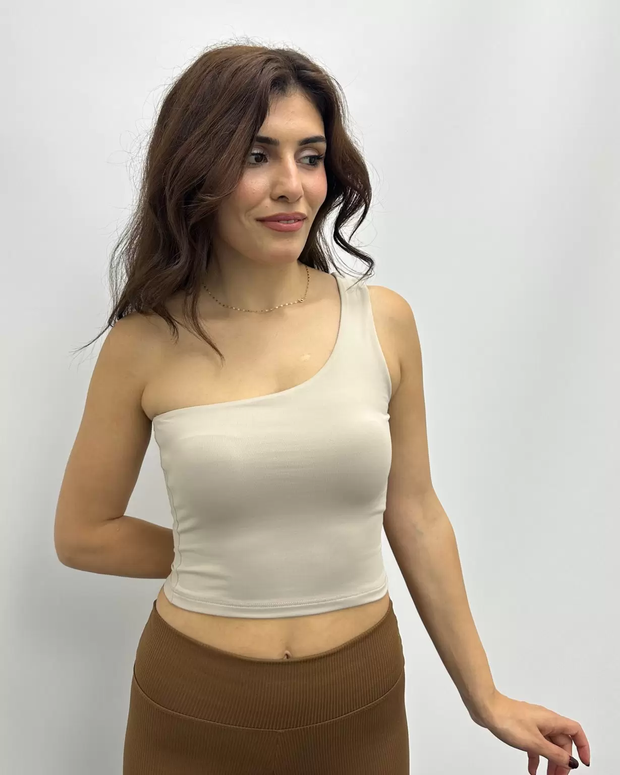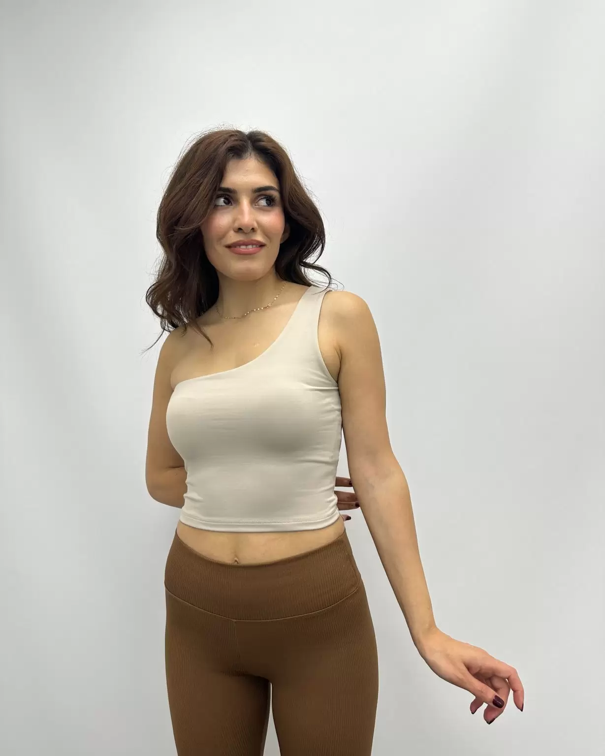 Ekru Oysh Modal Kumaş Tek Omuzlu Crop